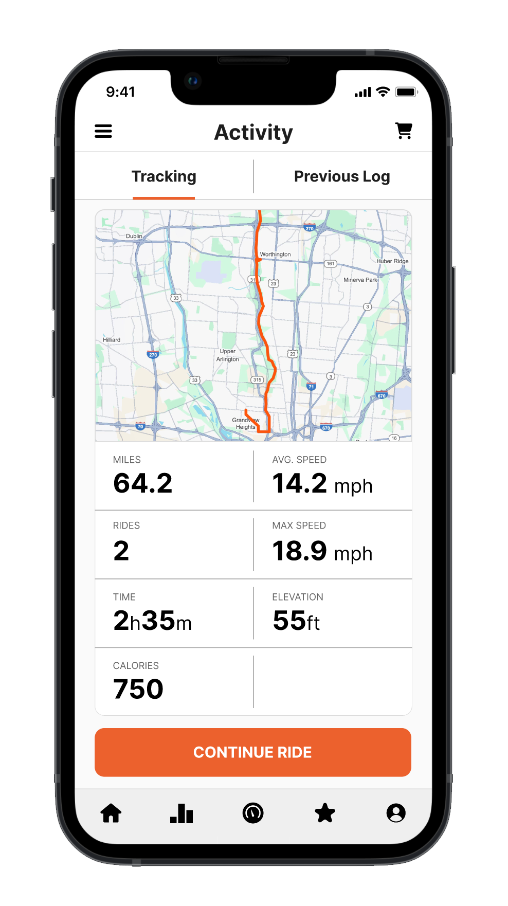 The Activity Page works hand-in-hand with the odometer to give riders a comprehensive view of their rides. A simple swipe reveals detailed metrics, including total distance, max speed, ride time, elevation, and calories burned, along with a map showing the route taken. Users can also review previous ride logs, making it easy to track progress over time. This section is designed to provide a complete picture of each ride while keeping the data organized and easy to navigate.