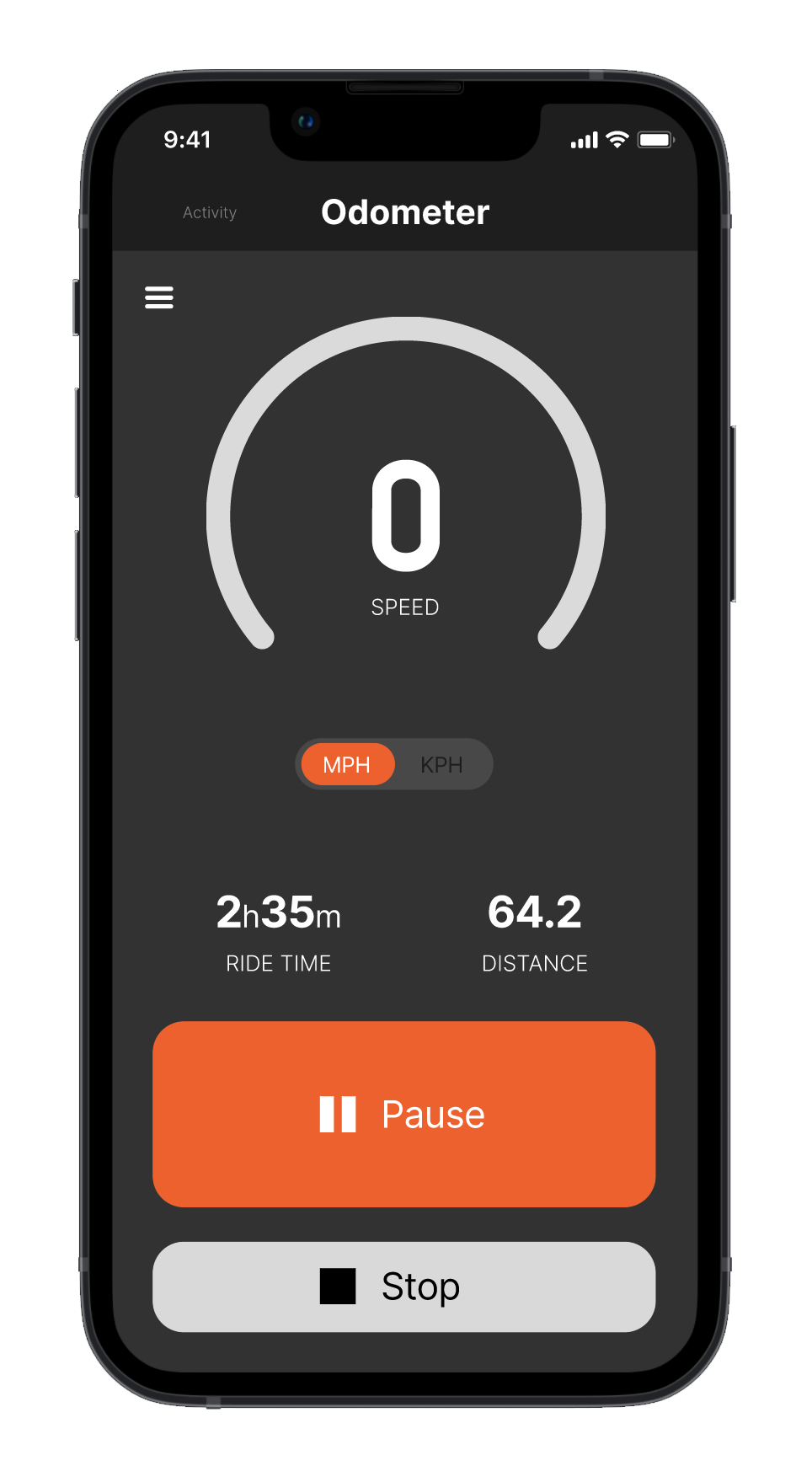 The Odometer is the part of the app that tracks the essential data from each ride, including distance, speed, and ride time. Users can toggle between miles per hour and kilometers, giving flexibility for different preferences. Designed to provide a clear and simple overview, the odometer focuses on the core metrics riders need to monitor their progress and performance.